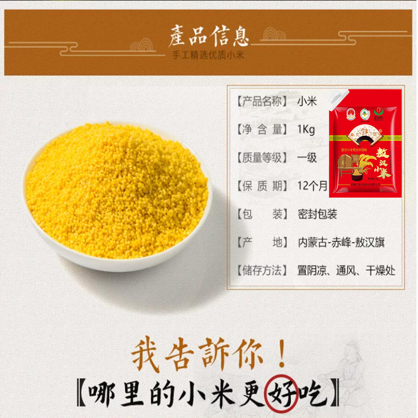 📚 蒙益粒赤峰敖汉旗小米1kg/袋内蒙古黄小米月子米杂粮粥米出米油汤