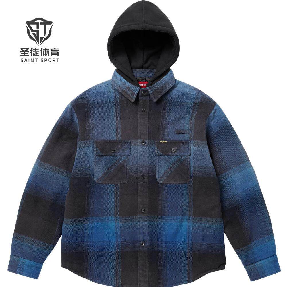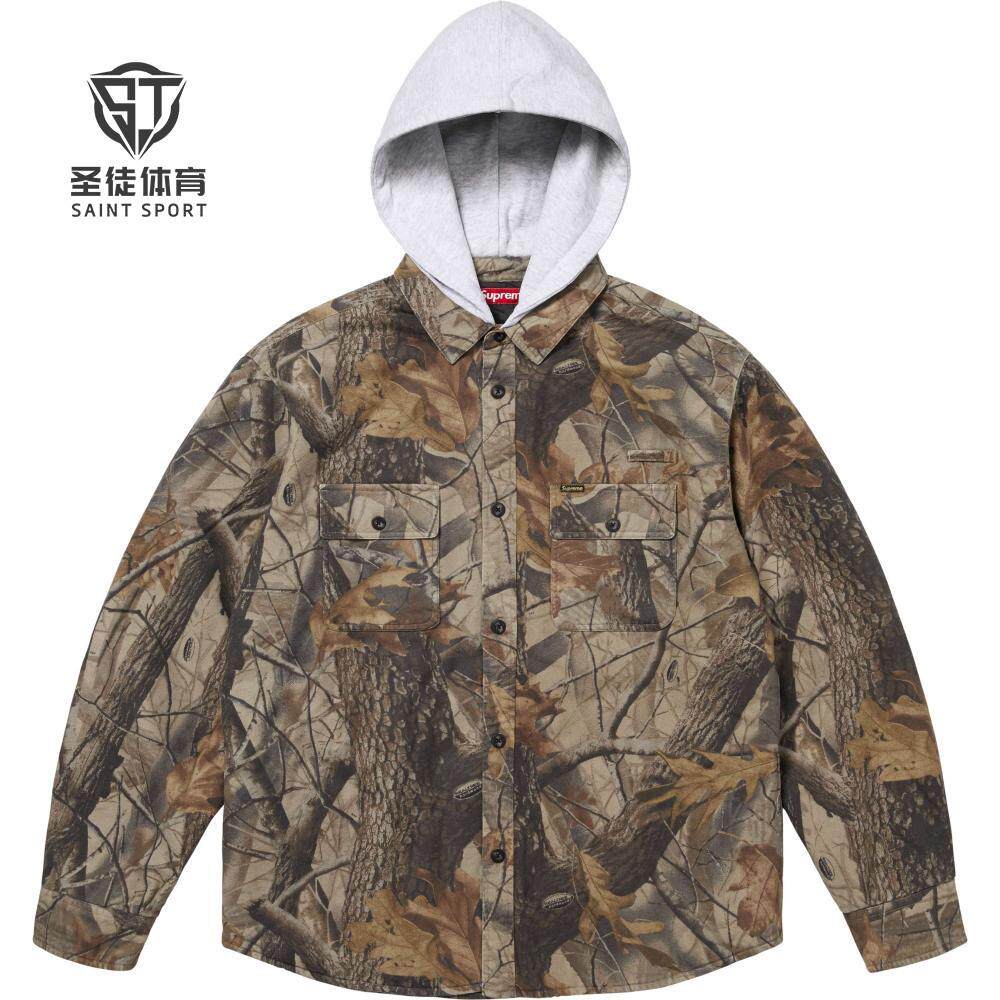 📚 现货正品Supreme 25SS Quilted Lined格纹树枝连帽法兰绒衬衫外套