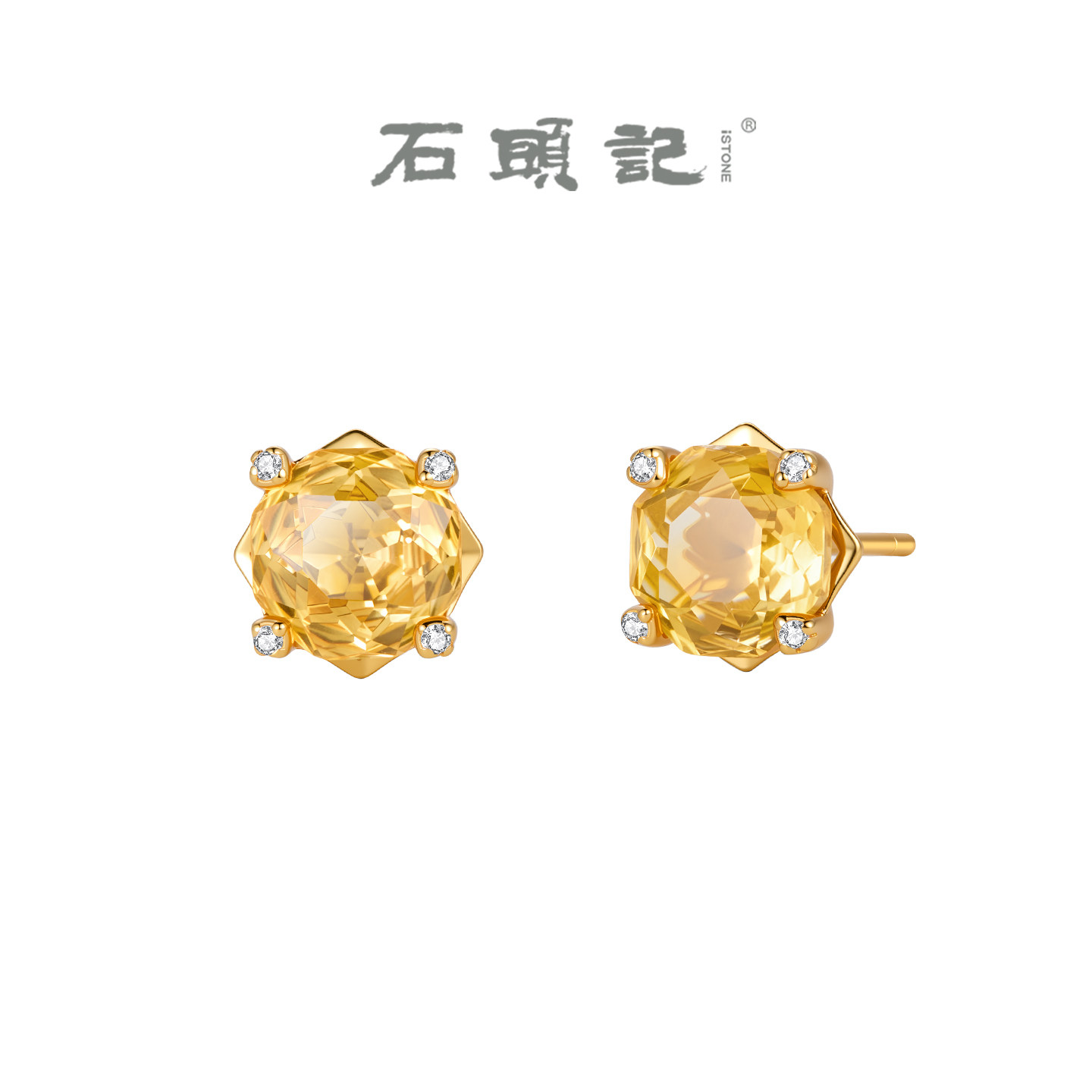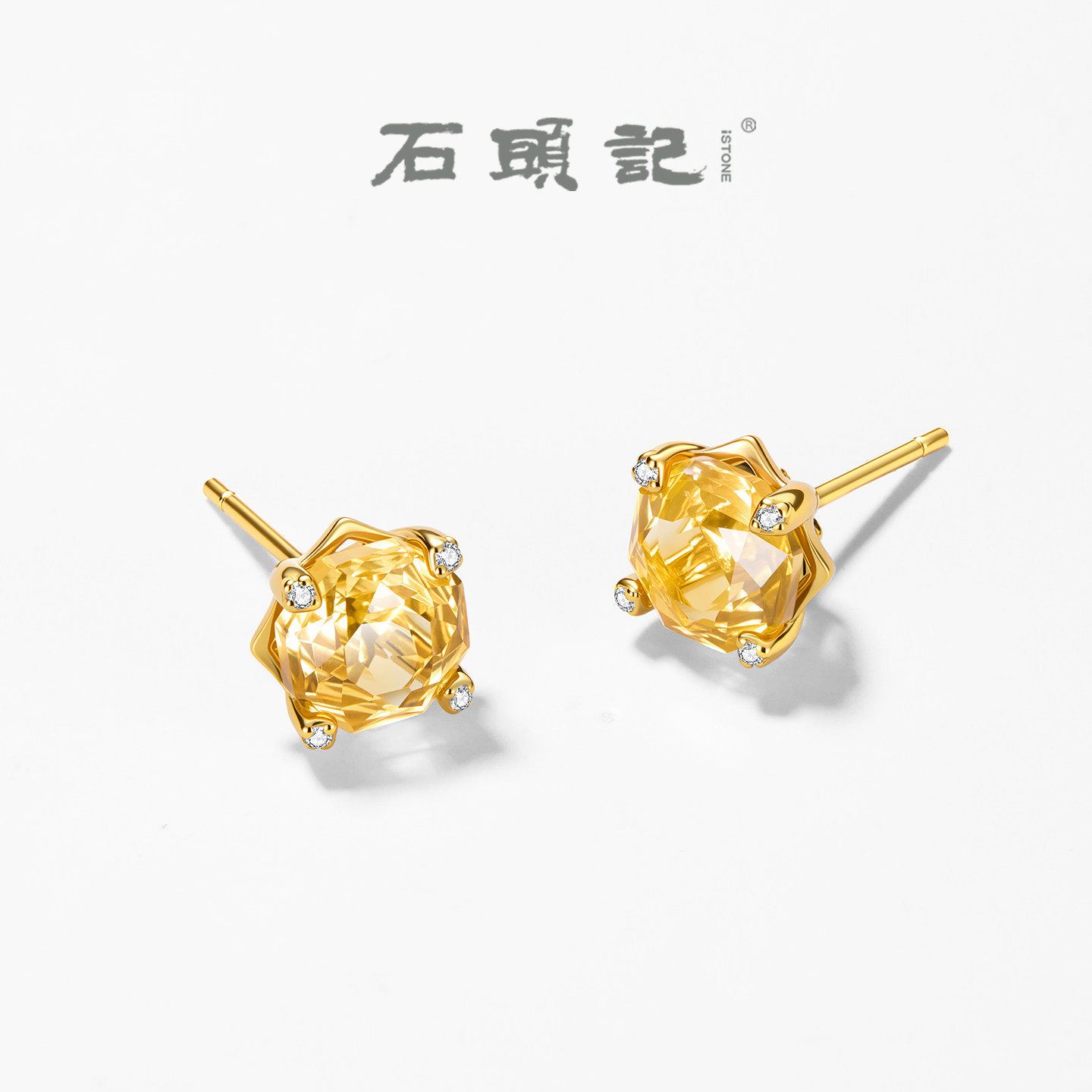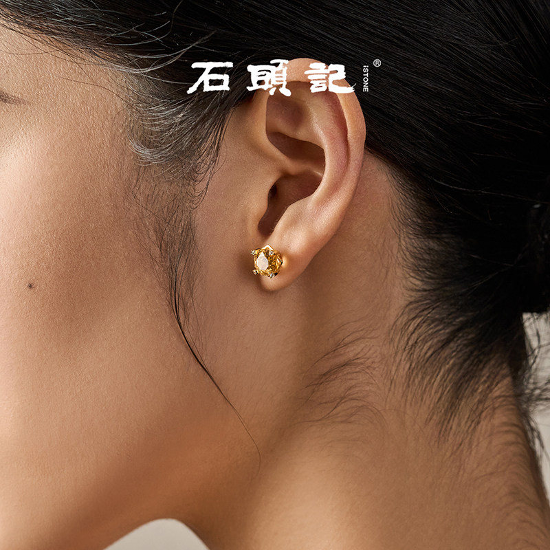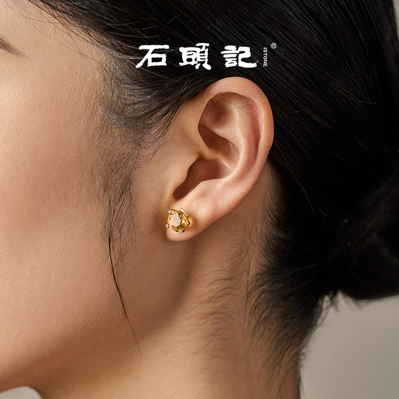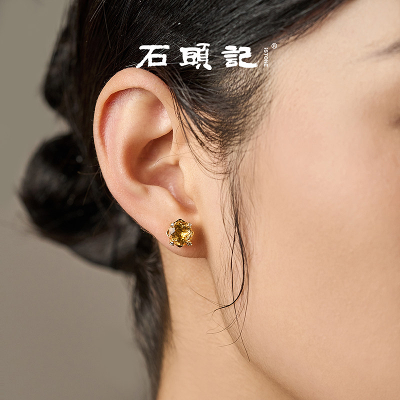 📚 iSTONE/石头记天然黄水晶玫瑰切耳钉简约时尚设计感纯银耳环耳饰