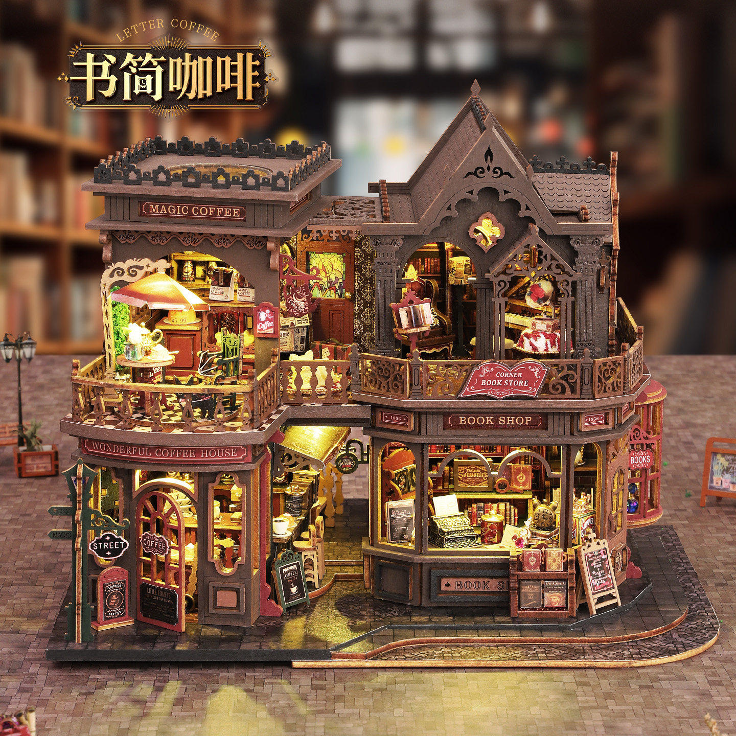 📚 新款diy手工小屋书简咖啡小房子拼装模型积木微缩场景新年礼物女