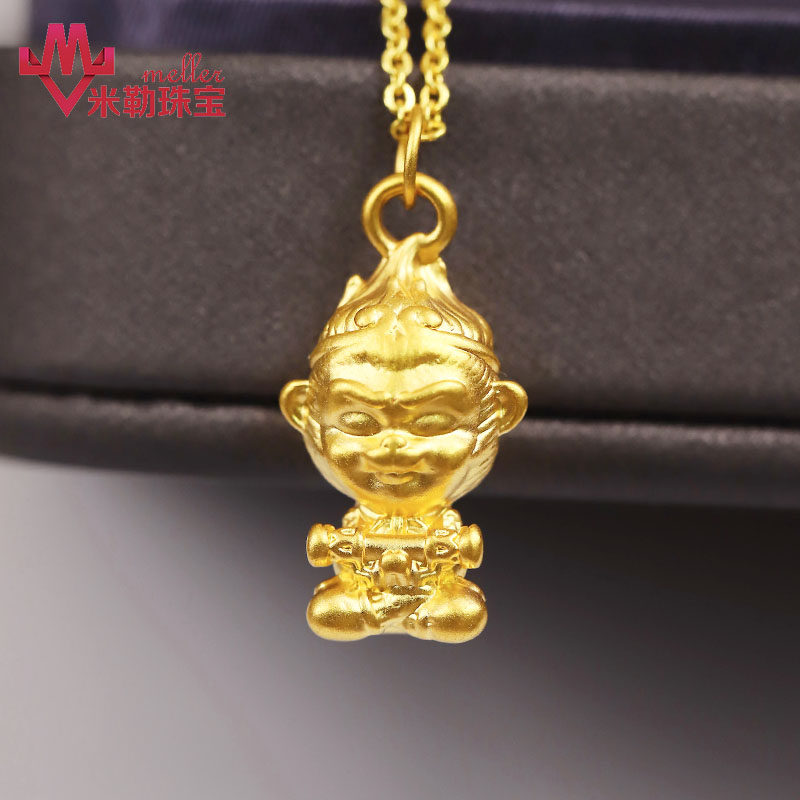 📚 悟空无氰硬金猴子黄金生肖猴足金齐天大圣吊坠项链小猴萌猴