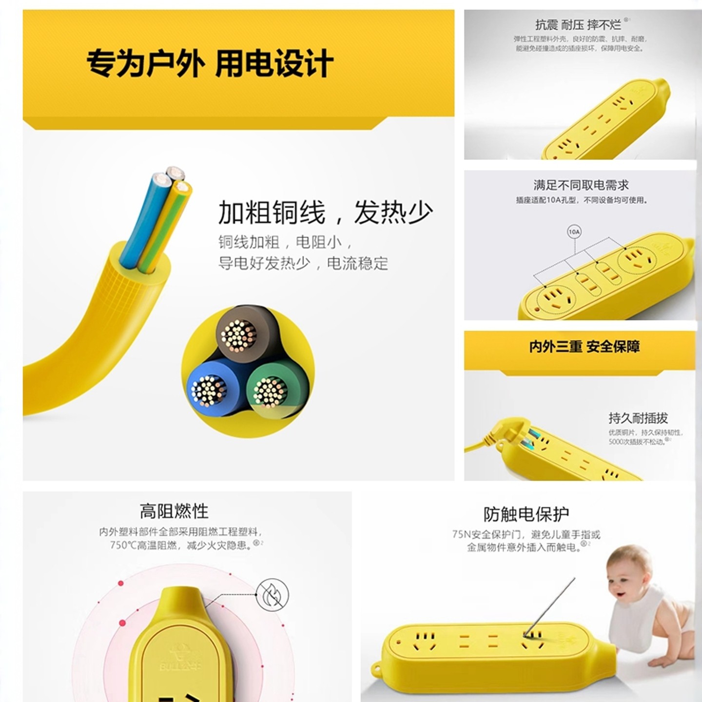 📚 公牛插座不带线插板无线插排多孔位工程防摔地拖线板自接线板排插