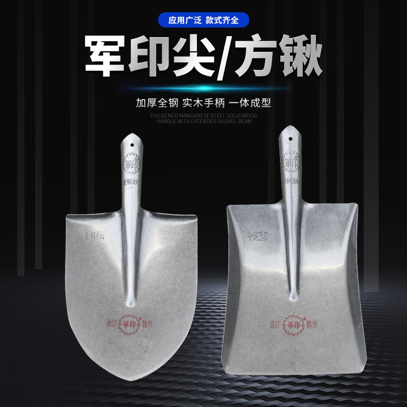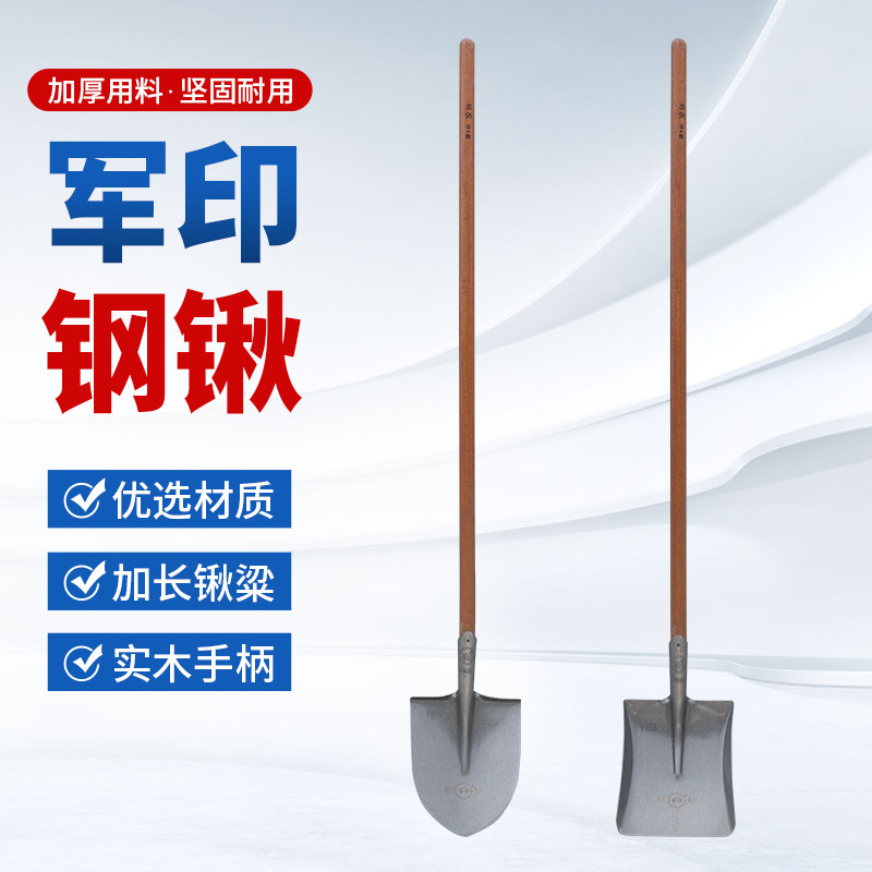 📚 军印平头锹铁锹全钢农用铁锨方挖树锰钢钢锹铲子挖土铁铲长木柄厚