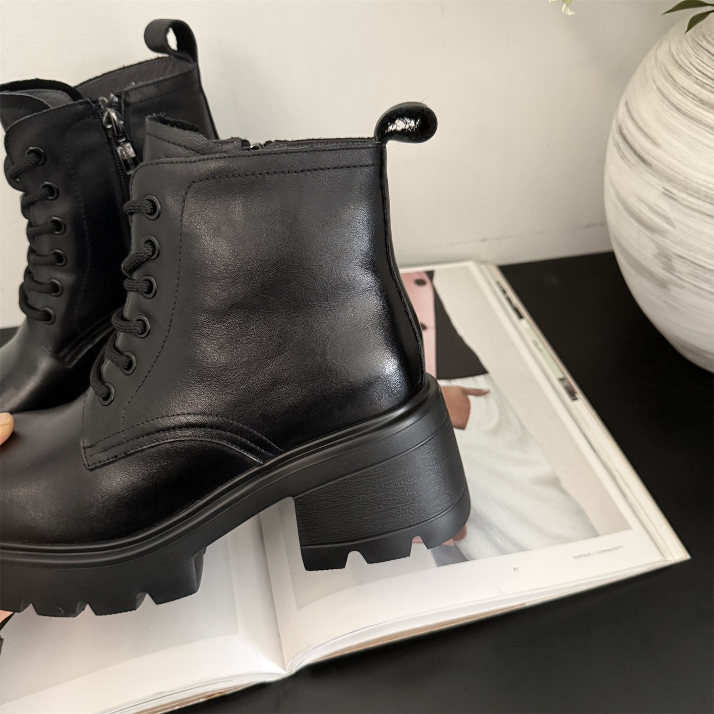📚 3515强人女鞋保暖真皮厚底马丁靴女冬季新款羊毛靴女休闲棉靴短靴