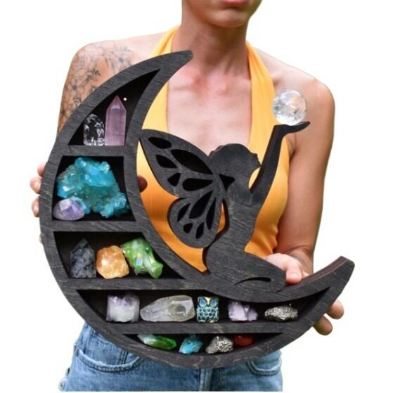 📚 跨境木质水晶展示架Cat in the Moon Crystal Wooden Shelf工艺品