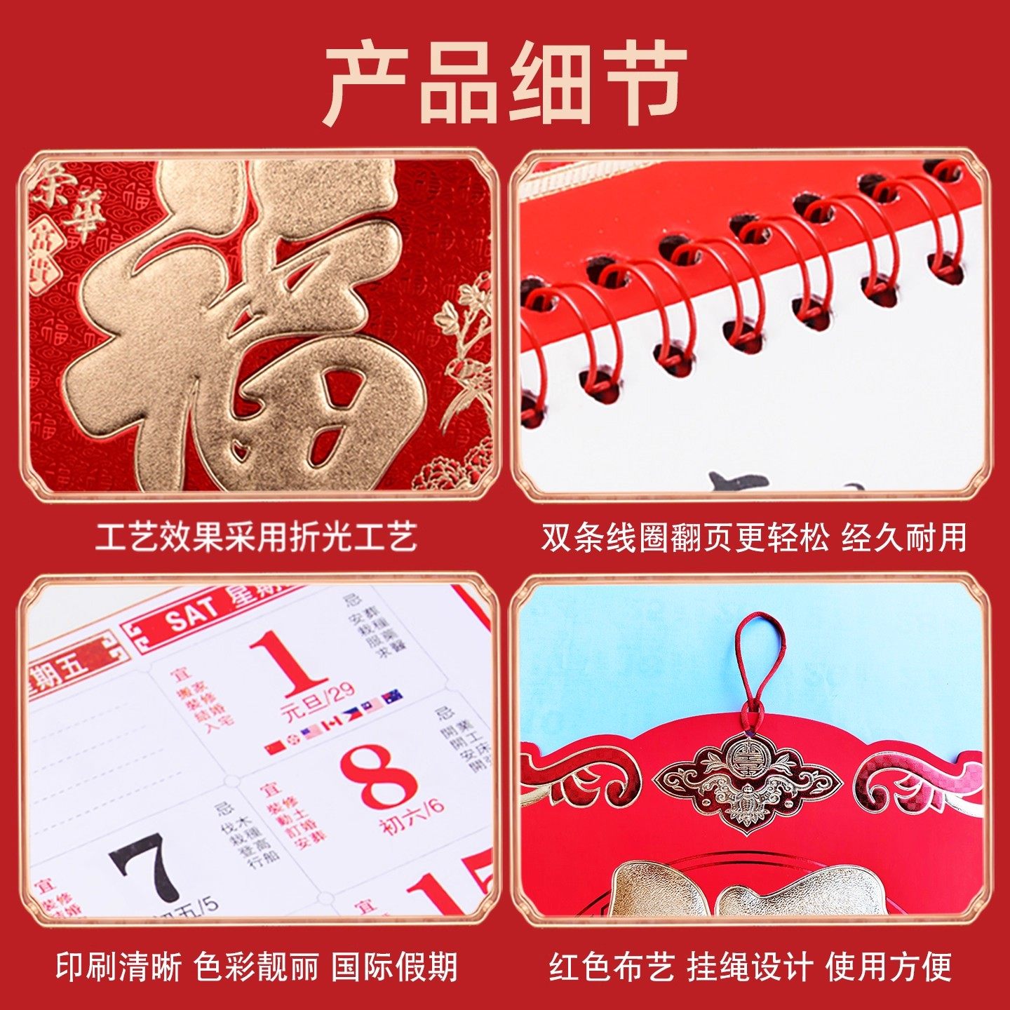 📅这款挂历真的是太太太好看了!它采用了高档材质,看起来非常典雅大气。而且设计新颖,充满中国风的元素,让人一看就心动。特别是那个福字,简直是让人感觉满满的祝福和好运!