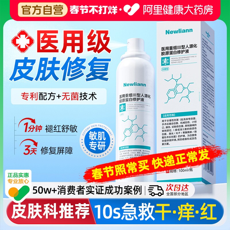 📚 医用喷雾重组人体表皮因子皮肤晒伤修复肌肤屏障受损修护补水凝胶