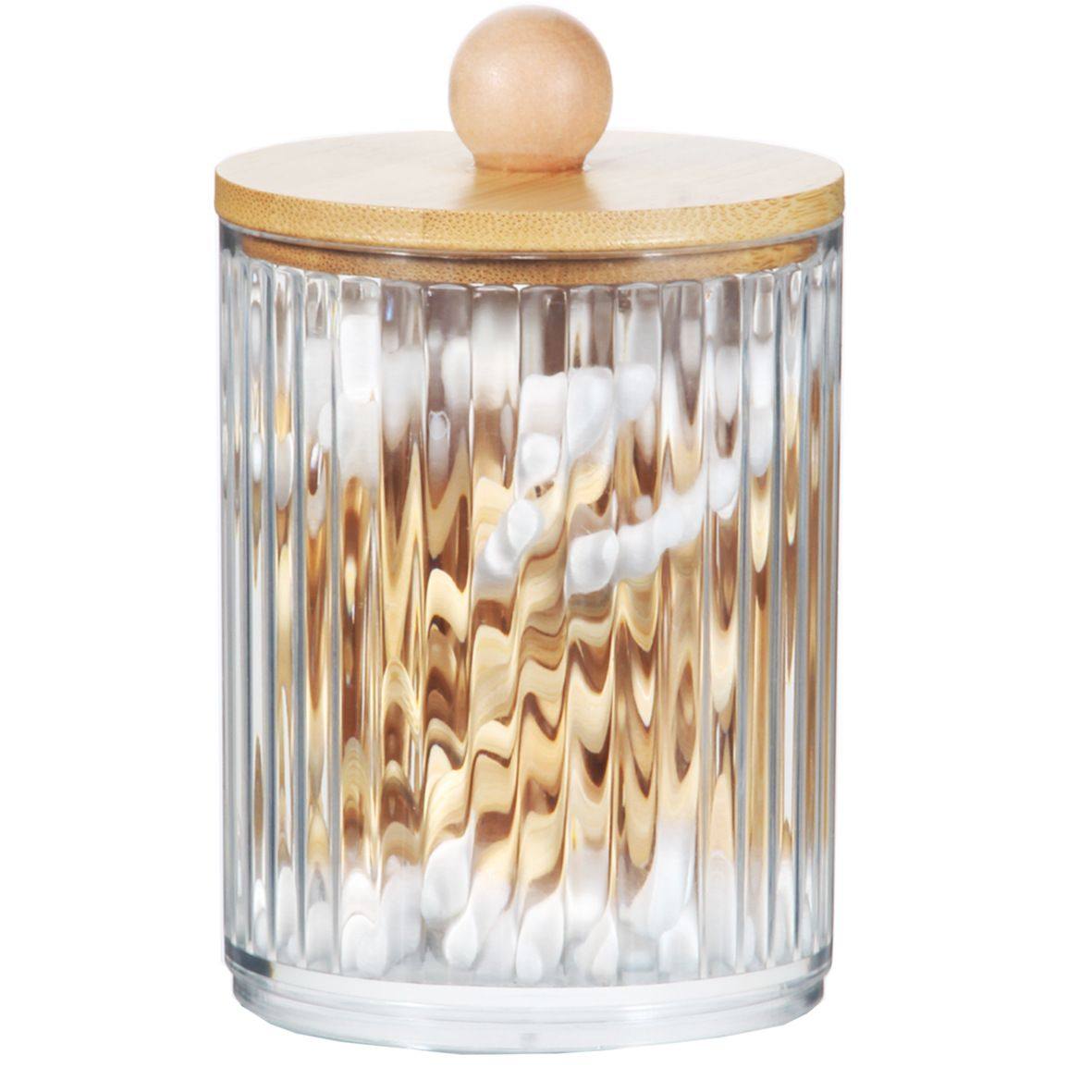 📚 棉签收纳盒竹盖亚克力便携式圆形容器化妆棉粉扑收纳棉签卸妆棉盒