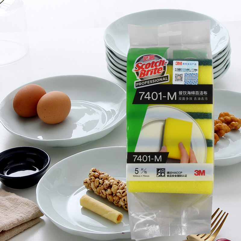 📚 3M思高96号百洁布7401餐饮海绵百洁布擦拭布洗碗布酒店用抹布M码
