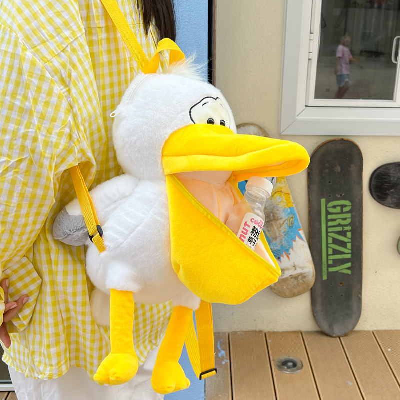 📚 新款鹈鹕毛绒双肩包卡通玩偶包学生小背包搞怪丑萌显眼包生日礼物