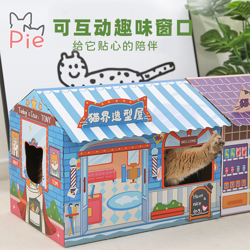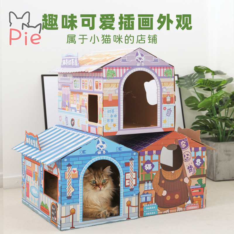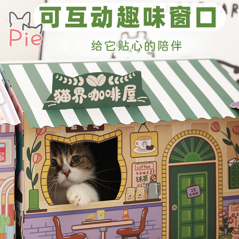 📚 梁老财有猫商店街猫抓板猫窝一体磨爪卡通可爱造型猫咪咖啡杂货屋