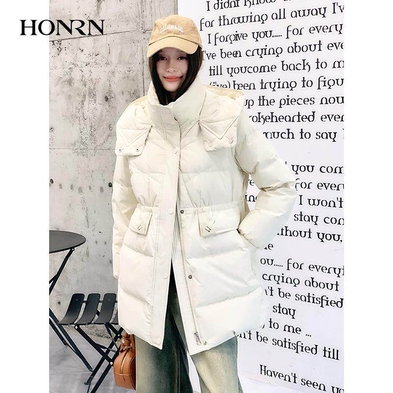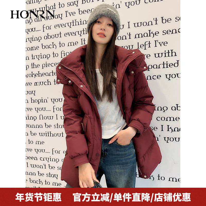📚 HONRN/红人轻薄立领连帽鸭绒羽绒服外套女中长款冬季HJ59YR152