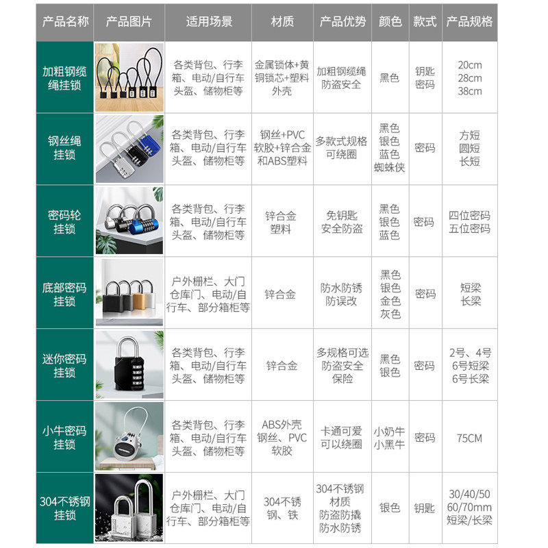 📚 链条锁钢缆锁挂锁长锁密码锁加长多功能锁防盗电动车车筐锁头盔锁