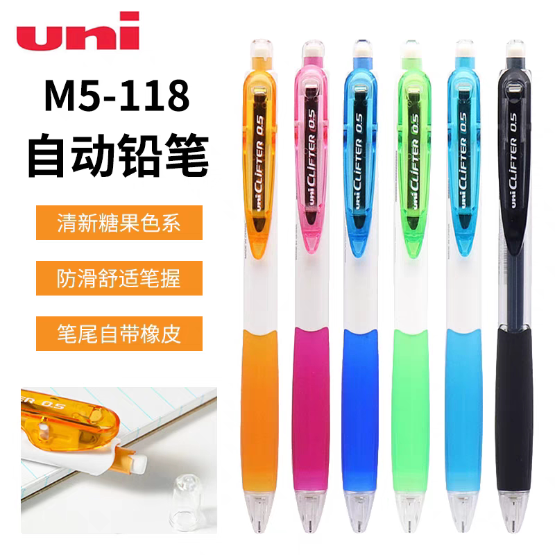 📚 日本UNI三菱自动铅笔M5-118活动铅芯4B糖果色可伸缩笔咀UL-S橡皮
