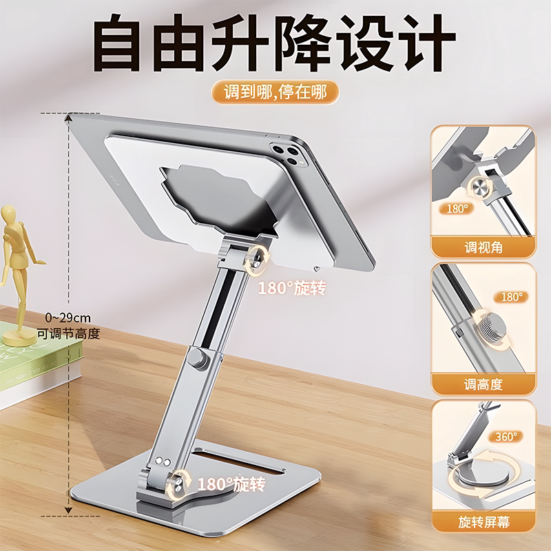 📚 铝合金iPad支架平板电脑pro12.9手绘屏画画专用可折叠升降两用增高架360度旋转便携散热托架学习网课手机支架