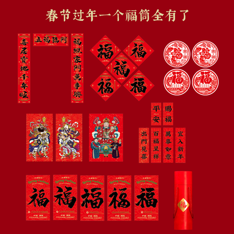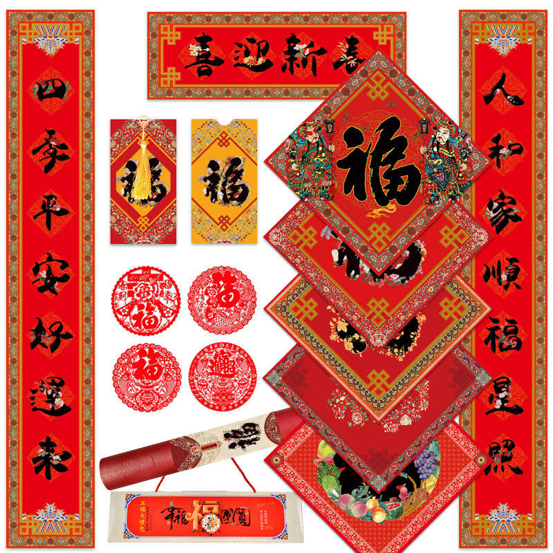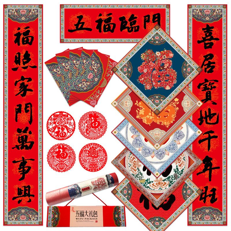 📚 五福临门2026年马年春节对联红包门贴窗花福字新年春联大礼包送礼