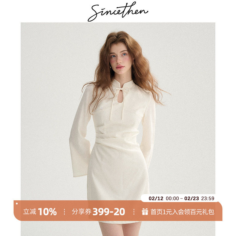 📚 sincethen 新中式改良旗袍裙小个子裙子白色长袖连衣裙礼服女早秋