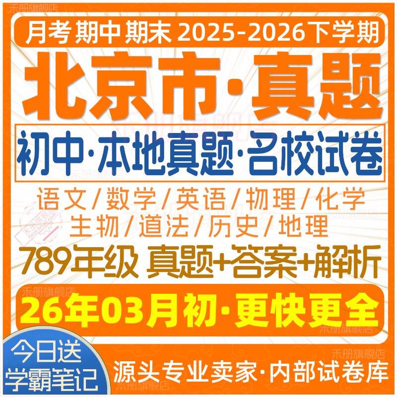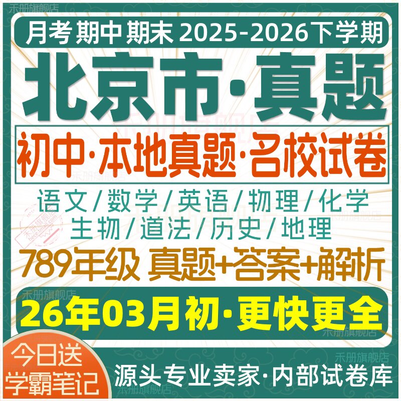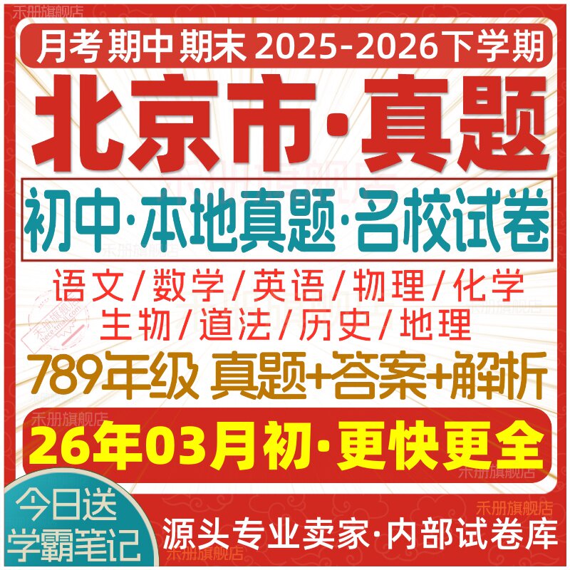 📚 2026新版北京市初中七八九年级上册下册月考期中期末名校真题试卷初一二初三数学语文英语物理化学生物地理历史道法练习试题电子版