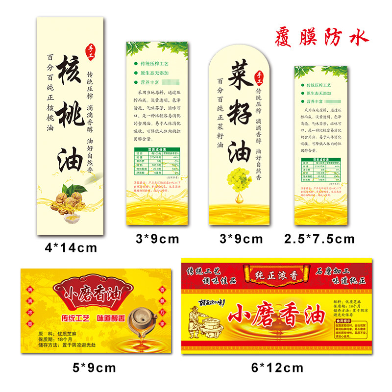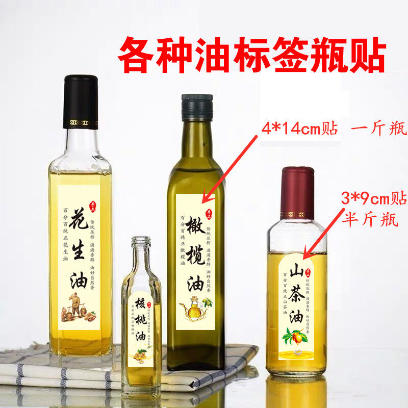 📚 定制食用花生油橄榄油核桃油芝麻油标签不干胶山茶小磨香油瓶贴纸
