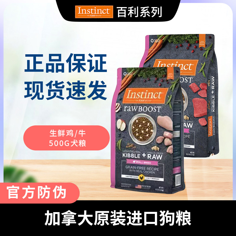 📚 天然百利Instinct原食经典生鲜冻干鸡肉牛肉小型全犬狗粮500g分装