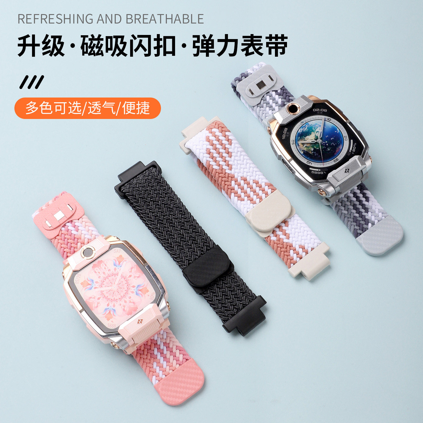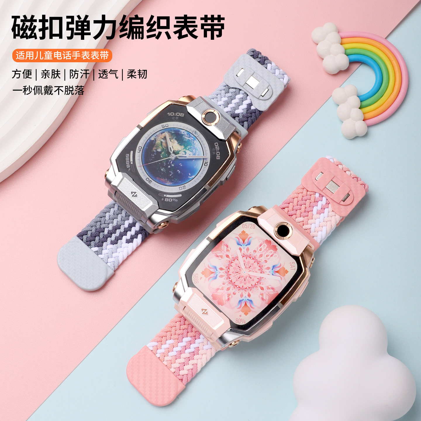 📚 适用于小天才z10表带新款编织尼龙磁吸扣腕带Z10少年版儿童电话手表保护壳替换带舒适透气夏运动男女生钢化膜
