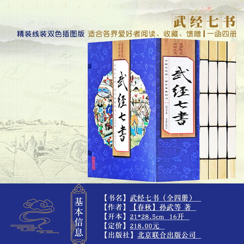 📚 手工线装武经七书套装4册孙子兵法吴子兵法司马法尉缭子黄石公三略六韬唐太宗李卫公问对七部兵书鬼谷子注释译文线装书正版图书籍