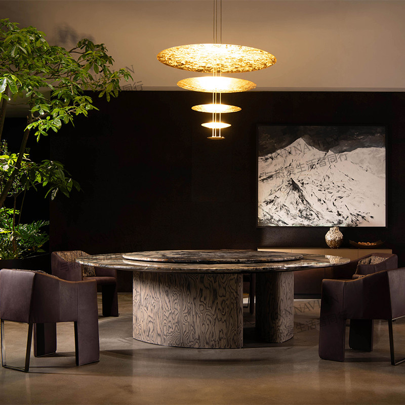 📚 【至臻系列】芬纳维亚 Girona赫罗纳轻奢大理石圆餐桌 别墅宴会桌