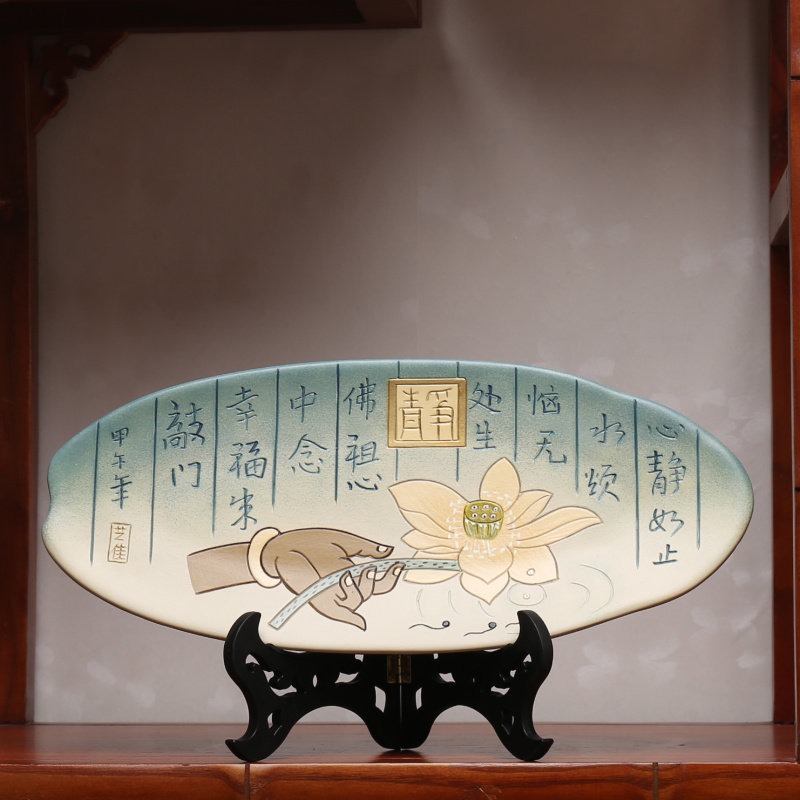 📚 中式复古风入户进门佛系禅意静陶瓷盘子摆件茶室玄关博古架装饰品