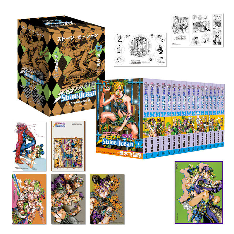 📚 【首刷限定大色纸+收纳盒+明信片x5+贴纸x2】jojo乔乔的奇妙冒险第6六部 石之海 共17卷 荒木飞吕彦 中文简体版JOJO漫画 新华文轩