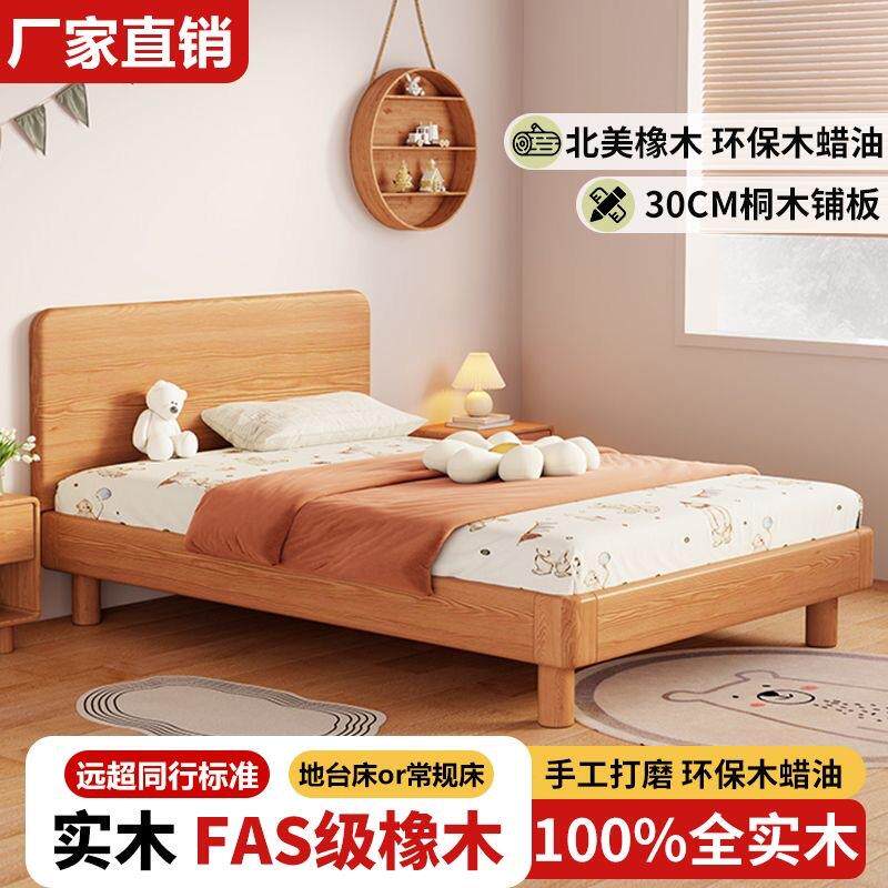 📚 木实木儿童床蒙氏少地用台橡SFY床青年简约单人床男孩女孩家小床