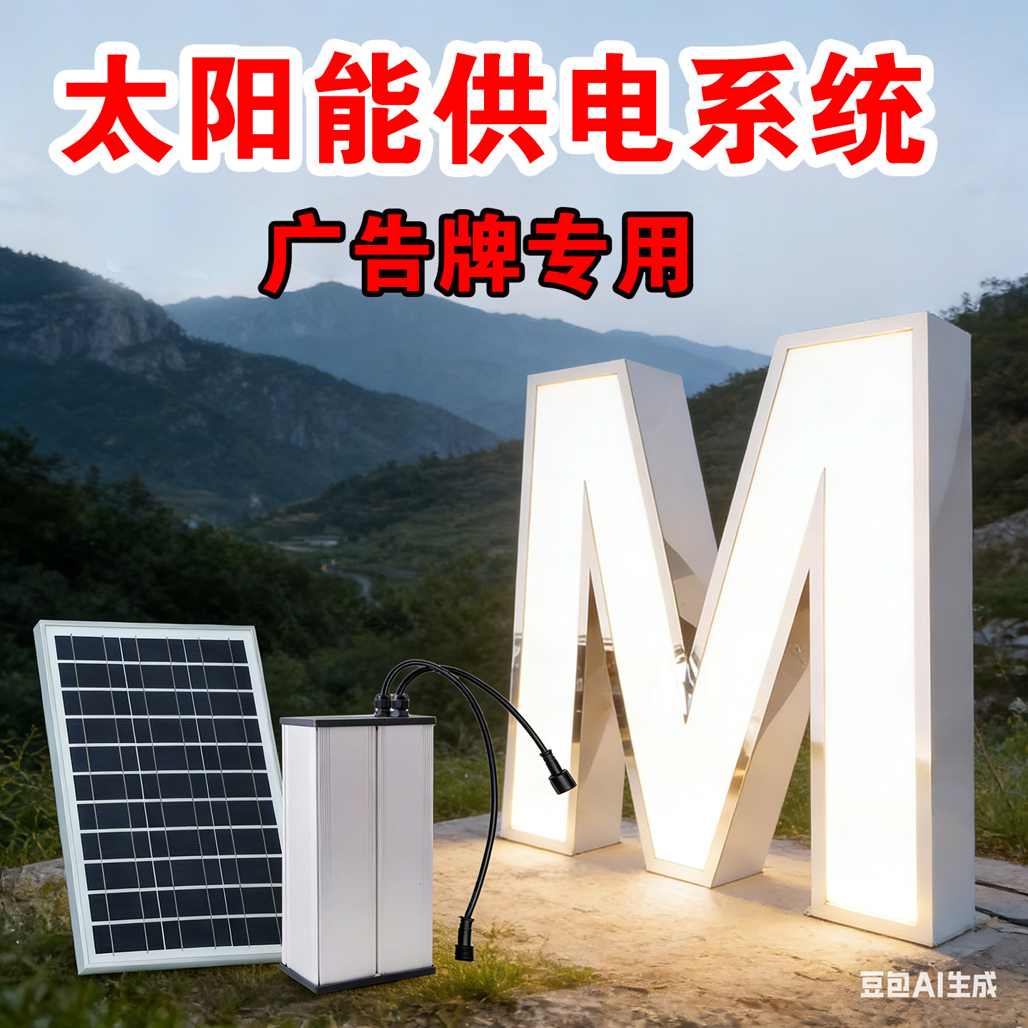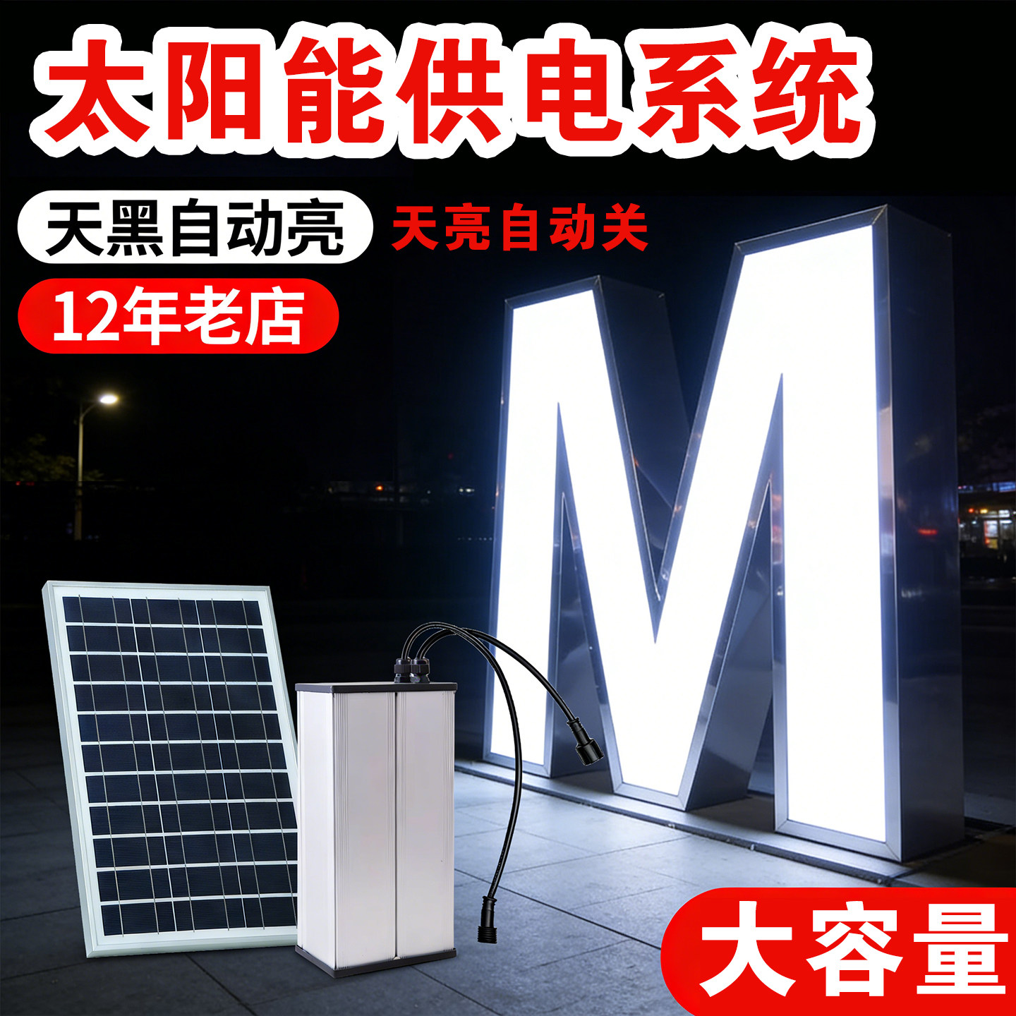 📚 太阳能供电系统12V光伏充电板锂蓄电池户外广告牌发光字灯箱发电