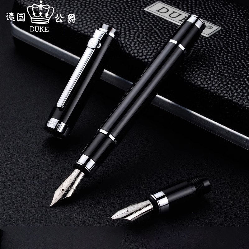 📚 德国公爵碳纤钢笔商务练字弯头墨水笔礼盒装定制笔特制复合弯尖笔