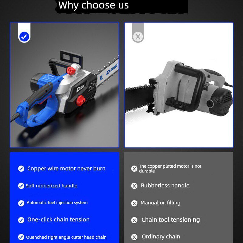 📚 灵威电锯家用锯柴小型手持伐木锯电炼锯木工锯电动锯子炼条锯220v