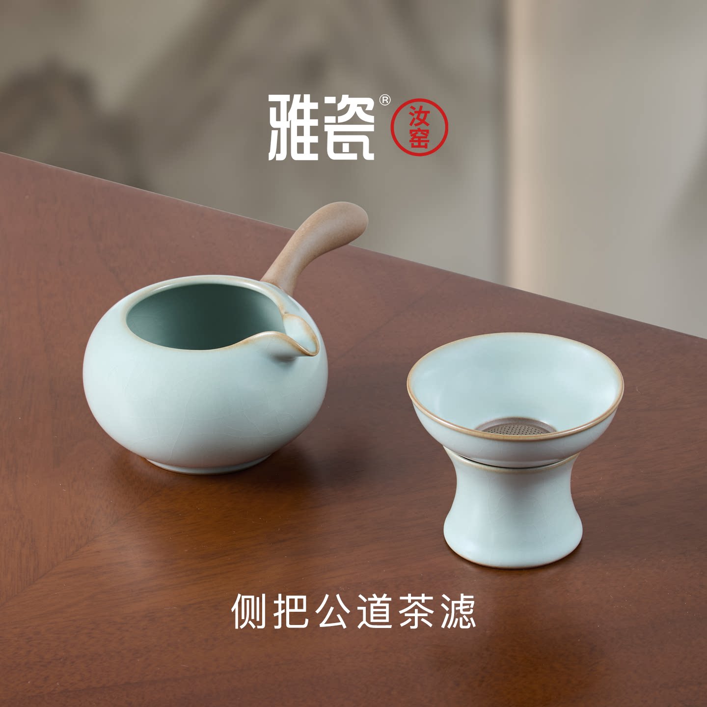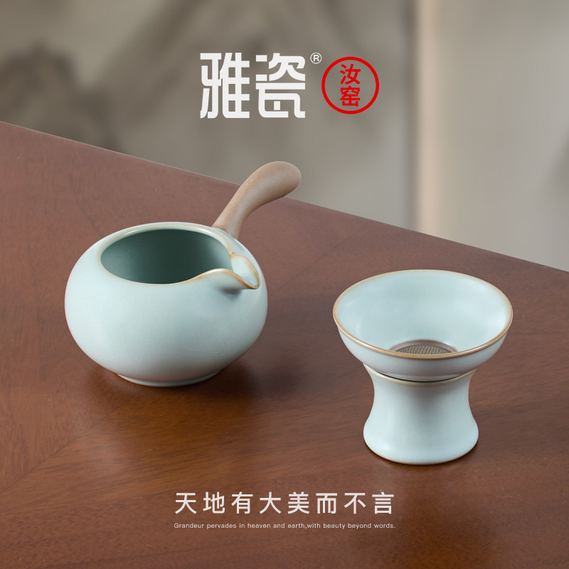 📚 雅瓷 汝窑侧把公道杯茶漏茶滤一体 汝瓷泡茶陶瓷分茶器带滤网