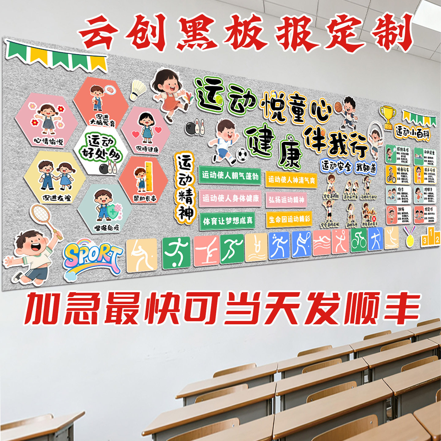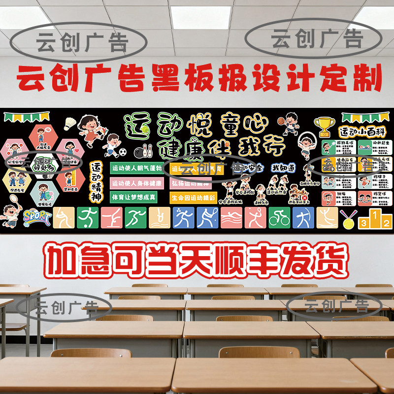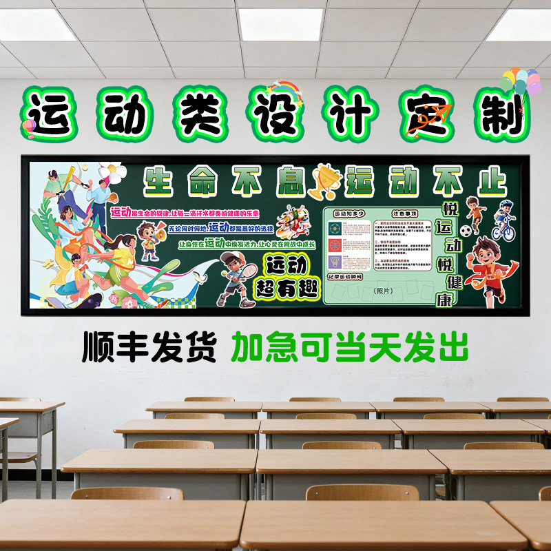 📚 定制运动主题黑板报装饰墙贴弘扬运动健康精神体育文化墙布置kt板