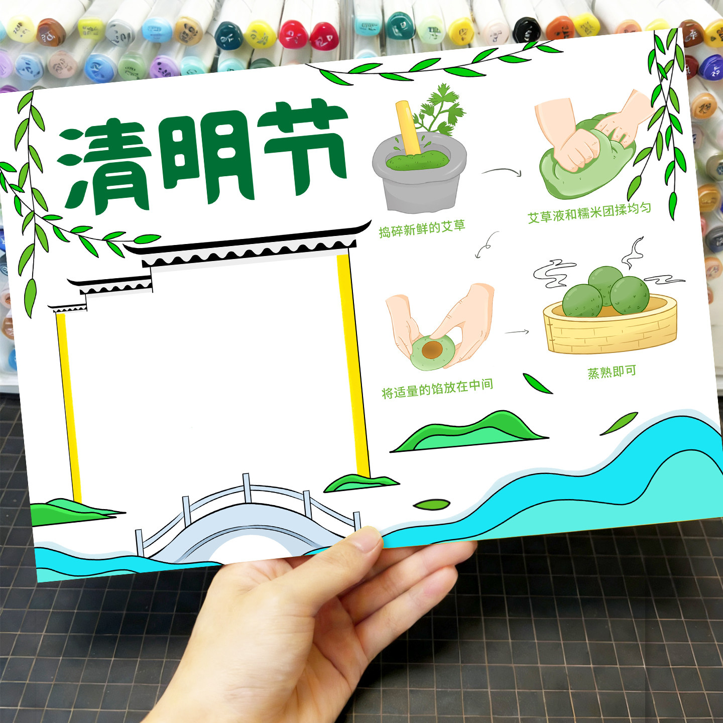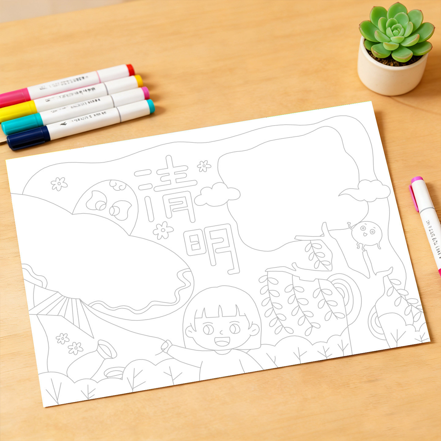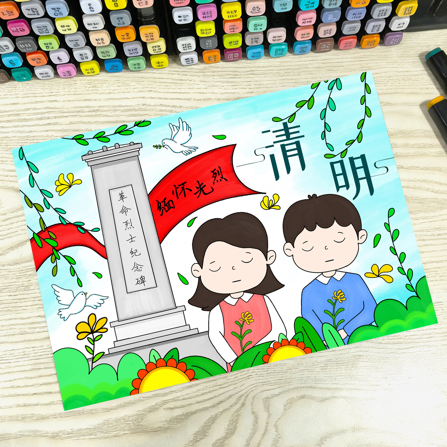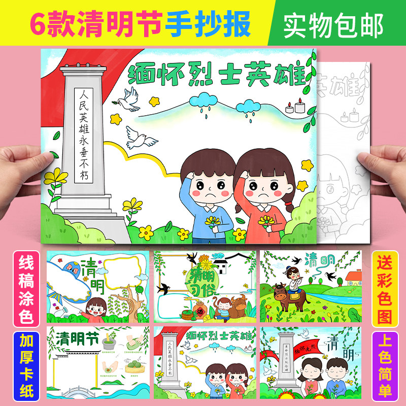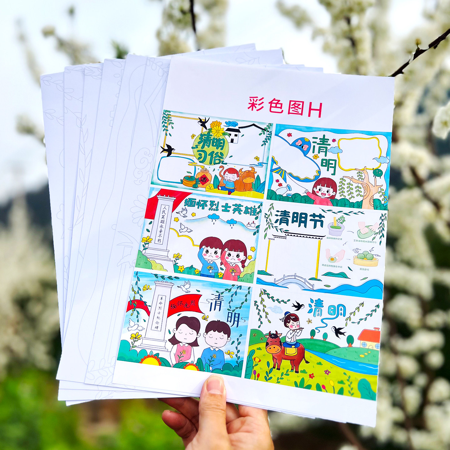 📚 清明节手抄报清明缅怀先烈儿童致敬英雄半成品线稿涂色小报实物