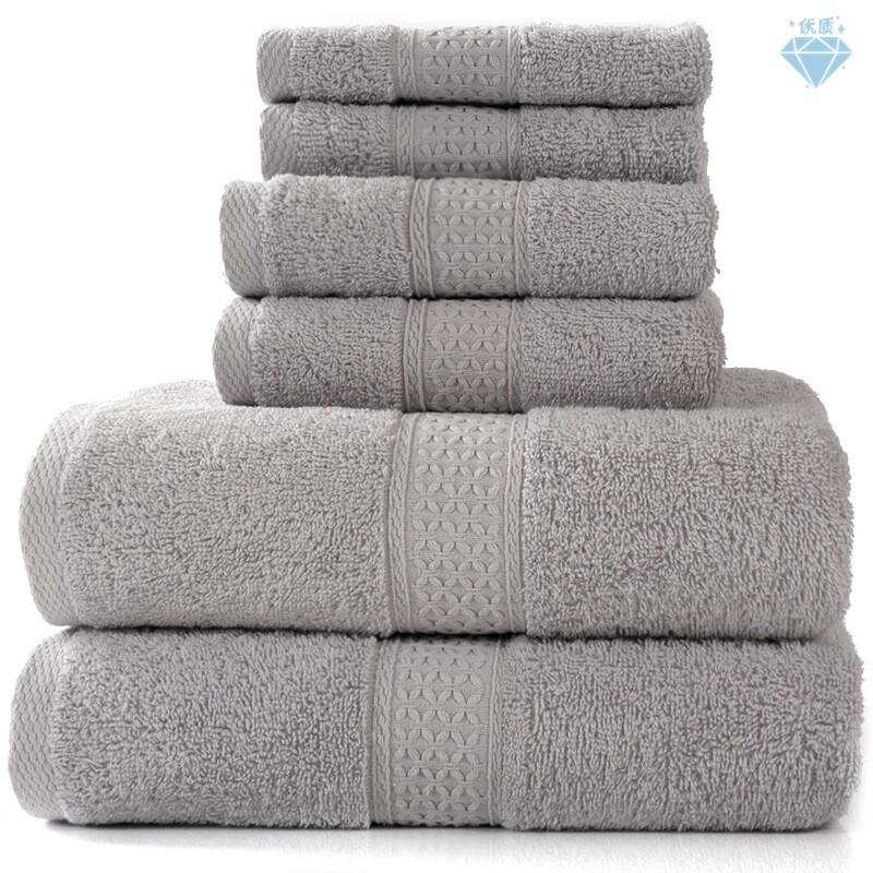 📚 纯棉浴巾方巾毛巾三件套 cotton towel set 3 pcs bath washcloth