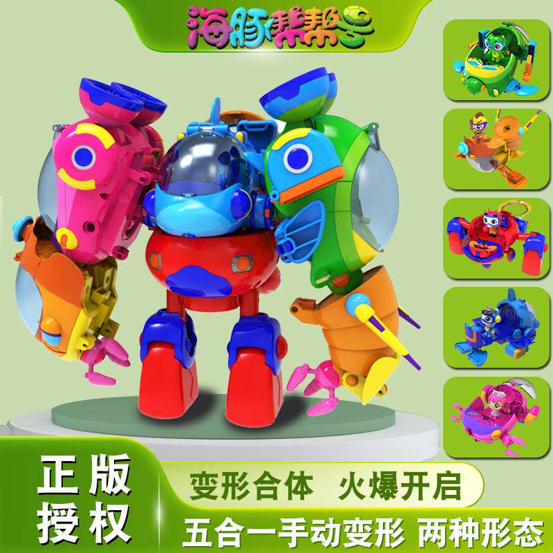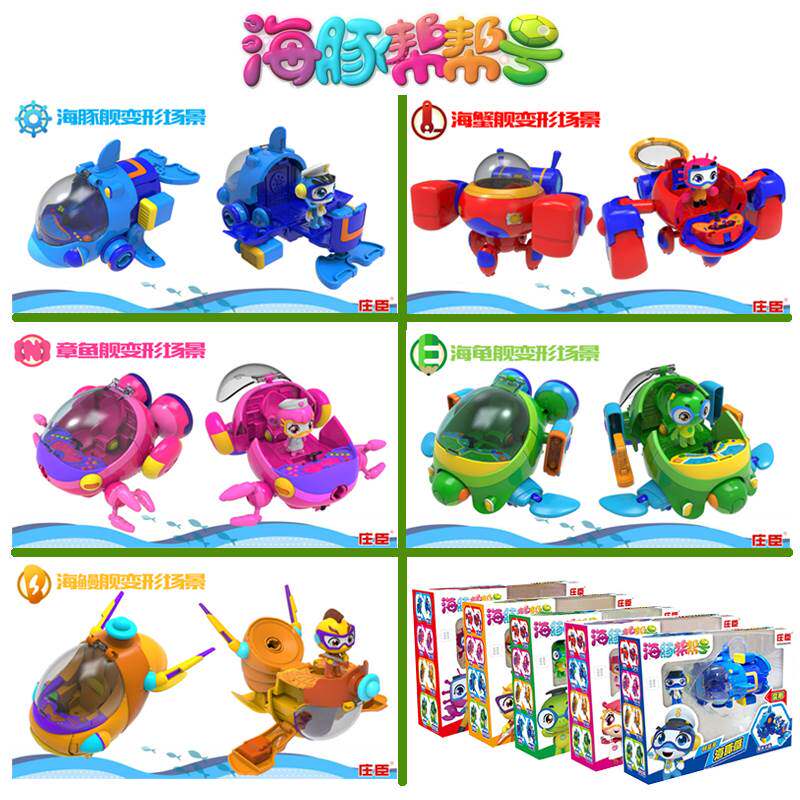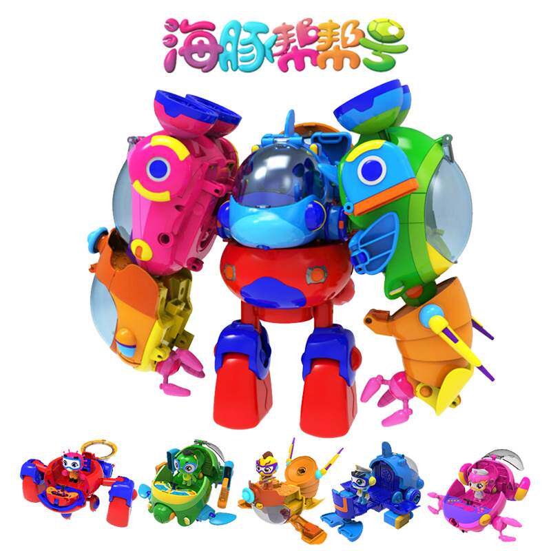 📚 。庄臣海豚帮帮号儿童五合体变形超能侠套机器人装舰艇男玩具棒棒