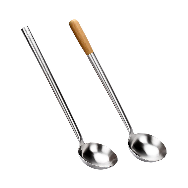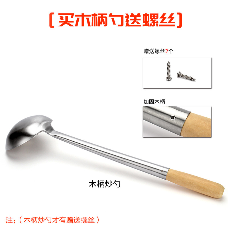 📚 不锈钢厨师勺炒勺木柄全钢勺炒菜勺炒锅专用勺大勺子铁勺壳大马勺