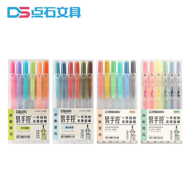 📚 点石制笔按动荧光笔夕雾勃艮第红彩色笔大容量画重点标注笔记书写复古色手账笔套装中小学生记号笔DS-805S