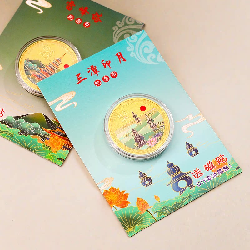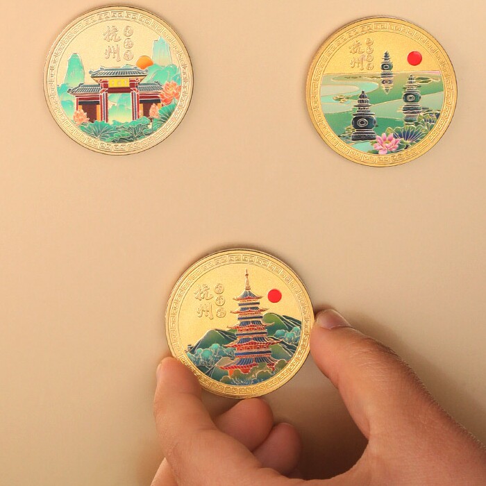 📚 杭州旅游纪念币雷峰塔良渚古城三潭印月彩绘DIY冰箱贴西湖小礼物