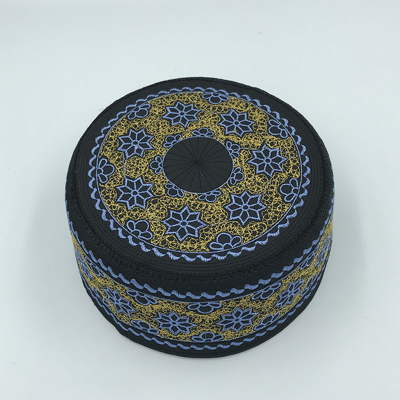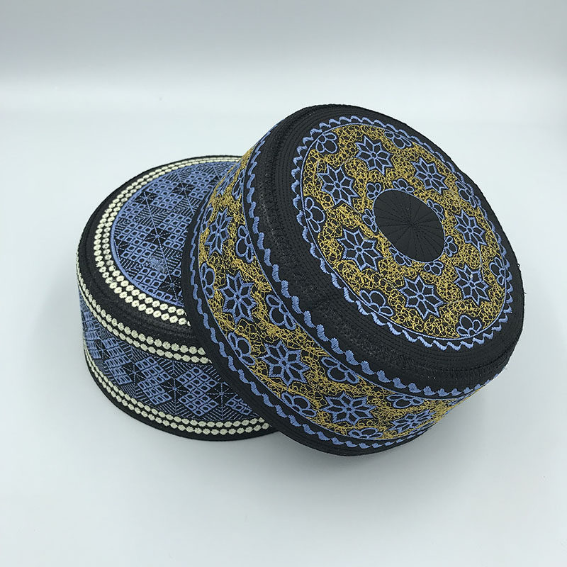 📚 回族帽子帽回男新款回民平顶圆边回回帽表演蓝花民族绣花帽