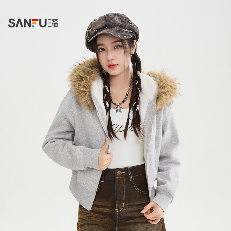 💥种草!三福卫衣外套2025新款冬季小个子加绒连帽短款开衫上衣,券后价仅259!💖