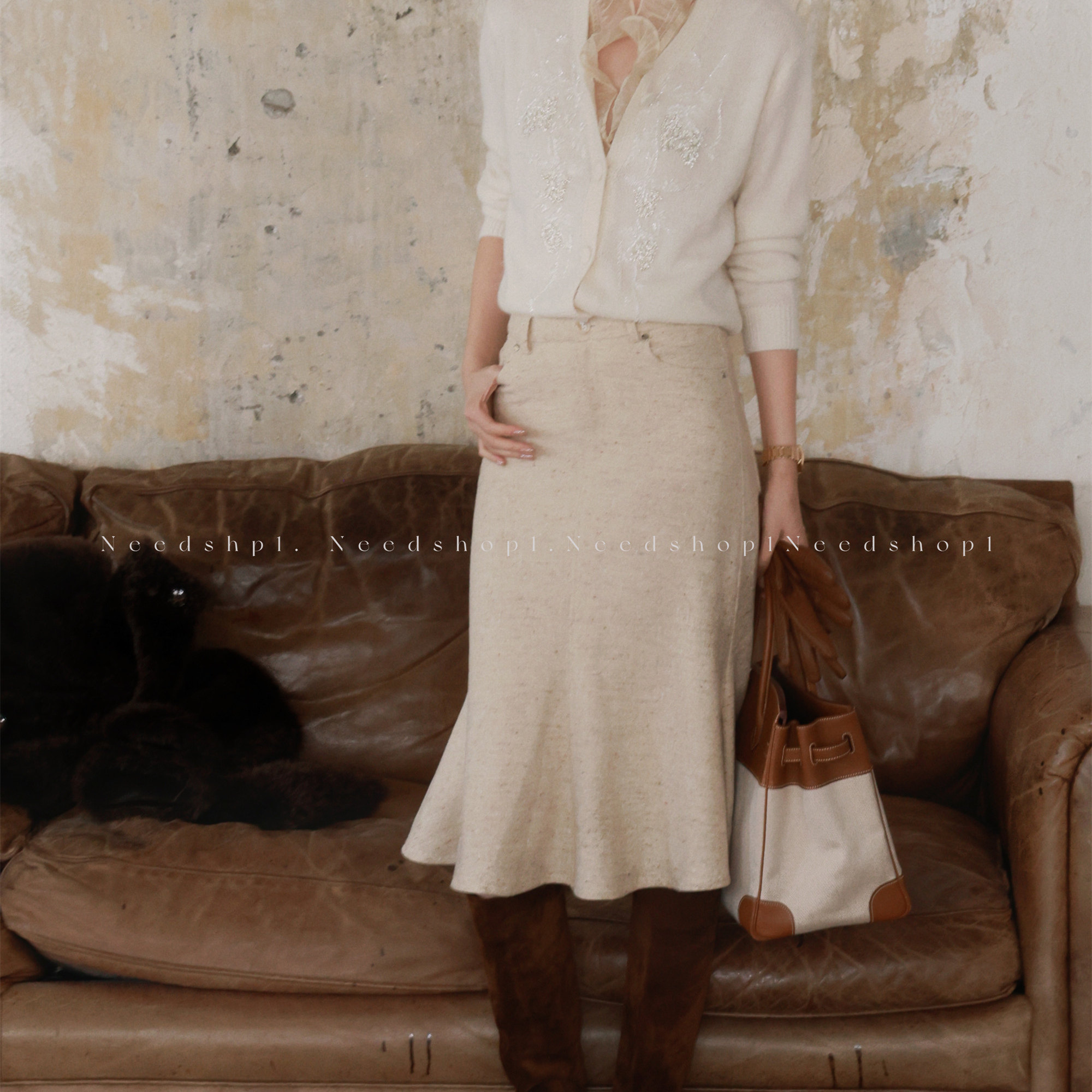 📚 NeedShop1 奶茶色简约高级感定制95羊毛鱼尾半身裙