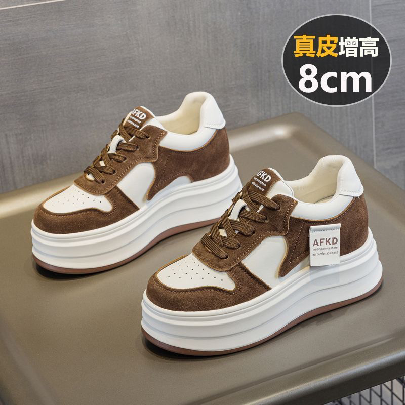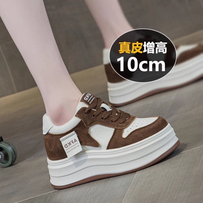📚 10cm内增高女鞋2025新款秋季小个子黑白小白鞋10公分厚底熊猫板鞋