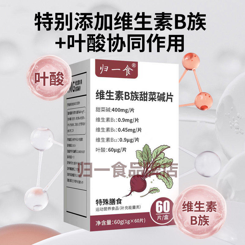 📚 归一食维生素b族甜菜碱片高含量维生素B1B6B12叶酸甜菜碱60片3xk
