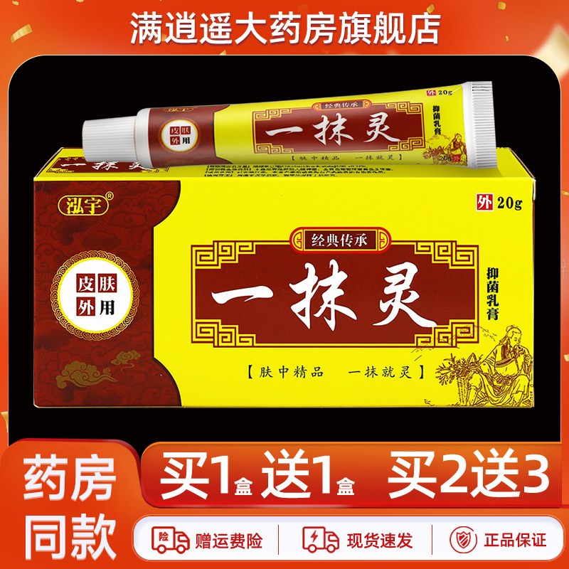 📚 【买1送1】泓宇一抹灵抑菌乳膏20g皮肤外用1抹灵草本软膏正品