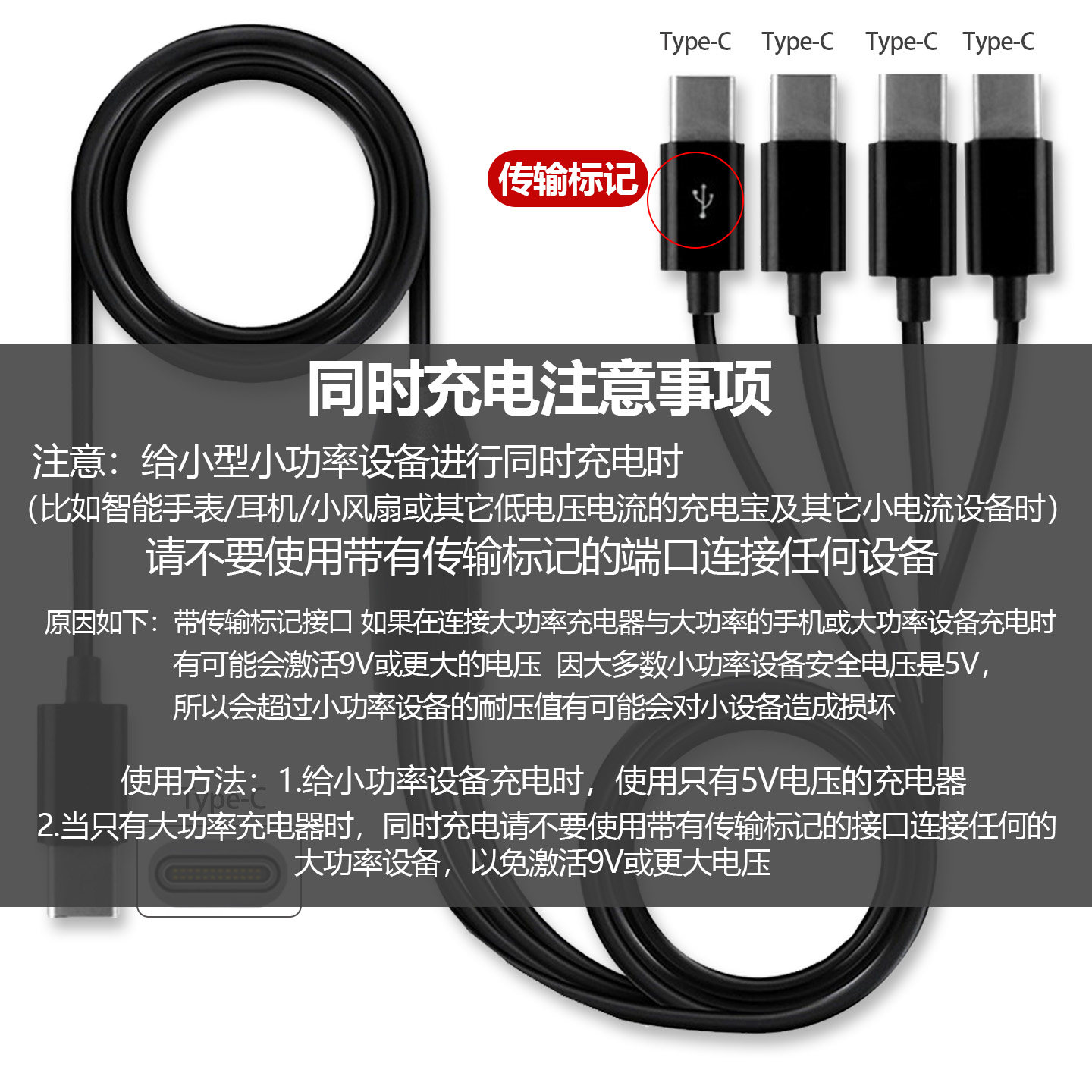 📚 Typec一拖六充电线分6个全tpc插头接口一分二三四tpyec多头6合1多功能3头手机直播PD供电线2米四合一加长分线