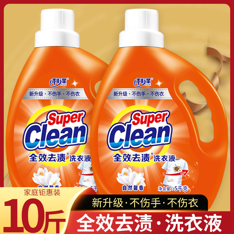 📚 【利泽正品】10斤全效去渍香洗衣液大桶5kg瓶家庭装批发套餐包邮