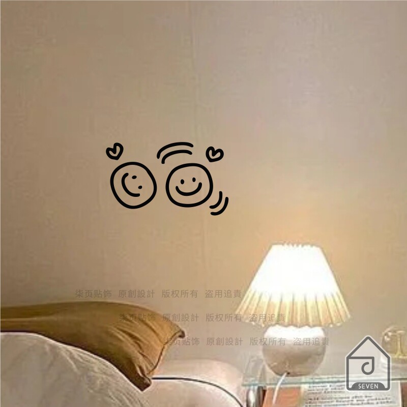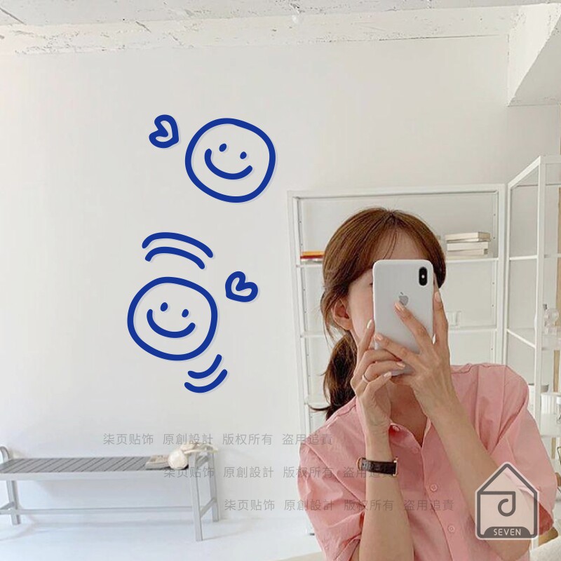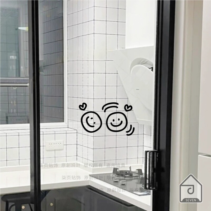 📚 柒页 笑脸 奶茶服装店玻璃橱窗装饰 卧室床头厨房门窗防撞墙贴纸